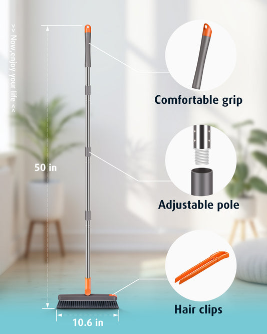 Grout Brush with Long Adjustable Handle, 2 in 1 V-Shaped Swivel Scrub Brush